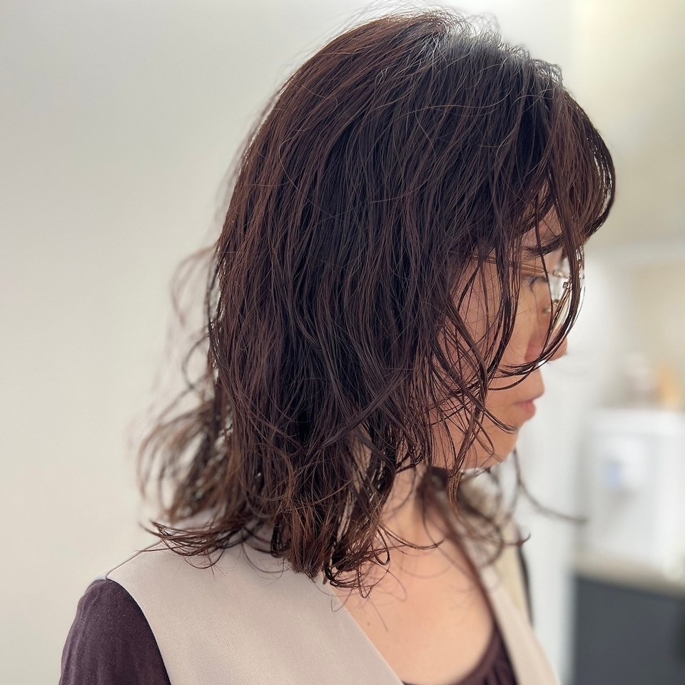 ロングヘアの方には、軽やかさを演出するふんわりパーマがおすすめとのこと。暗めの色味と組み合わせれば落ち着いた雰囲気に、明るめの色味を入れればやわらかな雰囲気に仕上がります。マンツーマン対応の美容院ですので、希望があれば気軽に相談しましょう。